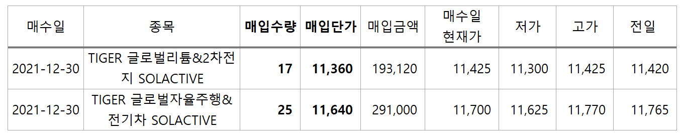 2021년의 마지막 장이 열리는 날, 새로운 종목 2가지를 매수했다.