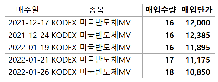 2022.03.13 - [ETF 매수일지] - 새로운 ETF종목 매수_KODEX 미국반도체MV
