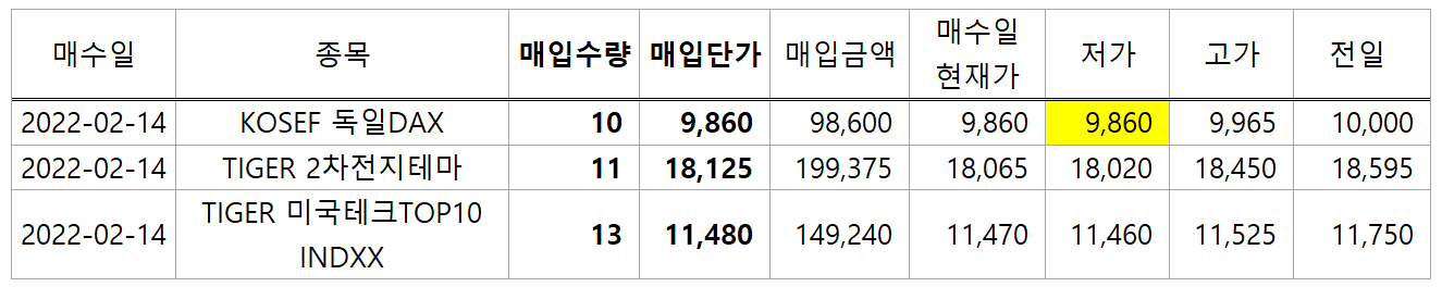 이 날은 기존에 계속 매수하고 있는 TIGER 2차전지테마, TIGER 미국테크TOP10과 더불어,