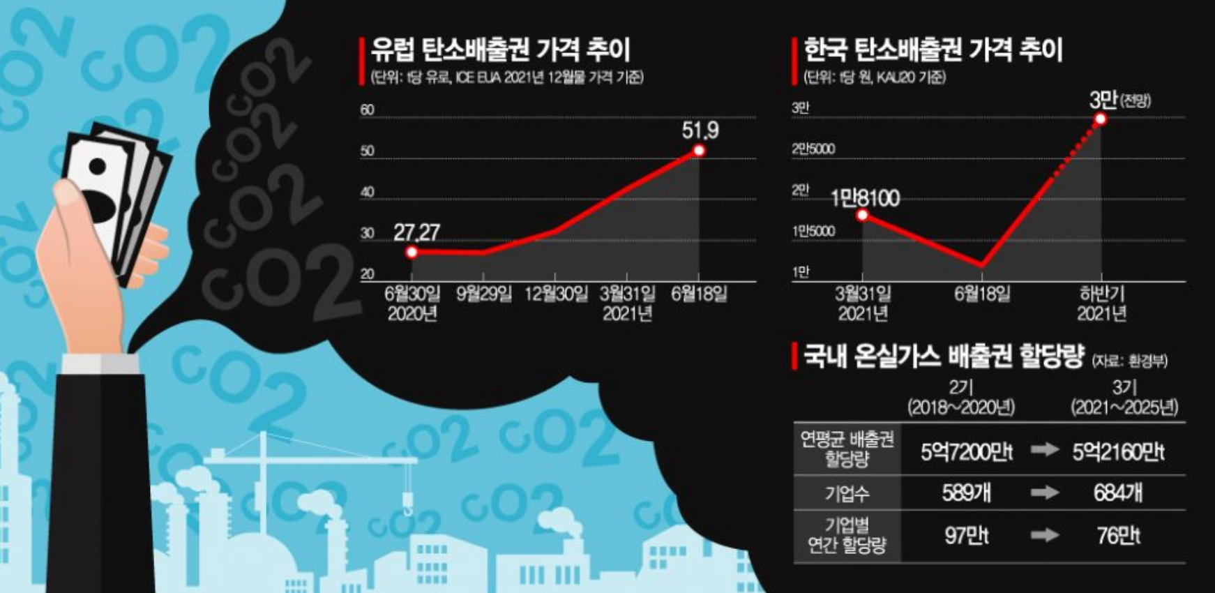 일정 수준이 넘는 탄소를 배출하기 위해서도 탄소배출권을 사야 하는 것이다.